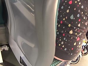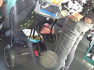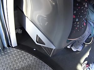 Someone should seriously tell this hot young milf to start wearing a belt, and underwear while we're at it. Voyeur notices how her loose pants fall down and her naked ass and crack is halfway exposed. He enters the bus behind her and gets even more of her accidental nudity moments. Her butt crack sure looks lovely when seen in this funny manner.