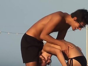 Her perky tits and small nipples are really noticeable and she is definitely the hottest girl on the beach today, which made the voyeur peep on her for as long as he could. She is doing some wacky tik tok trends with her boyfriend and he lifts her up and moves her around on the middle of the beach. Her firm breasts look awesome at all times.