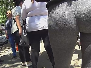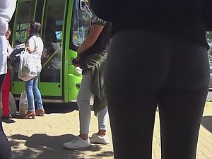 Amazing young ass in grey tights