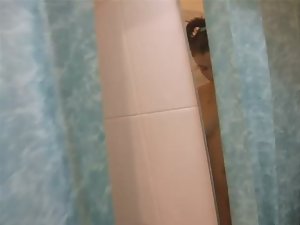 This boy had a good idea but his realization wasn't all that too good. He started good, by sneaking into the bathroom and filming his naked girlfriend from above in the shower. However, she busted him fairly soon and yelled for him to get out. Despite her anger, he took another look and showed us her pretty body and neatly shaved pussy.