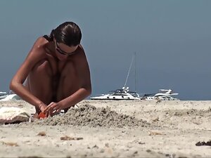 She is a sex bomb and that makes it worthwhile to peep on her for as long as humanly possible. She is dark tanned for spending a lot of days and time on a nudist beach and voyeur caught her while she is chilling with her boyfriend. Her hot ass, big tits and landing strip on top of her pussy are just some of the reasons what makes her so arousing.