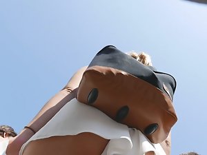This teenage darling has no clue that I was watching her sweet young butt for a nice while, from right behind her back. It was slightly windy and her loose skirt was bouncing so much that it kept showing me what insanely attractive ass is lurking in her upskirt. That is the kind of ripe ass you want to leave teeth marks on.