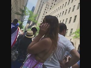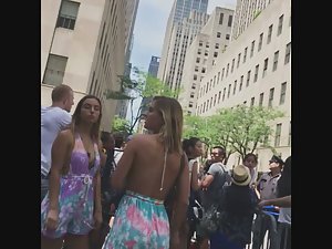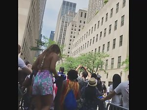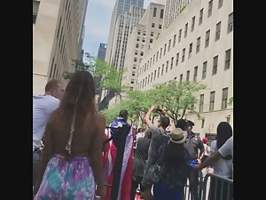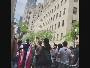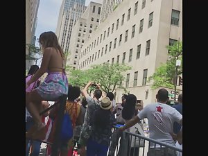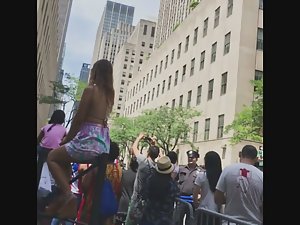 This is pure attention whoring if you ask me. There was a crowd gathering up and they were all filming and looking at what was going on, yet this sexy bitch had to jump on top of the fence, even if it means flashing her sweet ass to all the bystanders. I'm not complaining, just stating the obvious.