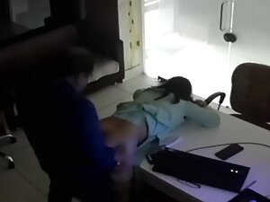 Seems that this bold boss forgot about the security camera in his office and he fucked his chunky secretary right beneath it. She sucks his dick for a little bit and then he bends her over the computer desk to fuck her from behind.