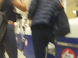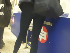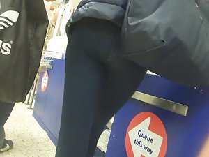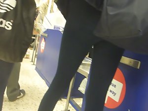 I've spotted this blond chav princess while she was in the supermarket with her friend. Speaking of her friend, she is a total chav slut, in it's purest form. My blond princess on the other hand is also wearing tights and she likes to show off, but with her long blond hair, she looks like a princess.
