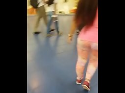 Voyeur followed a teen girl with massive muscular butt all the way around the shopping mall. She pressed her thick legs and ass in colorful tights and it made her look like some kind of a sexy terminator walking.