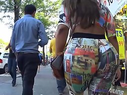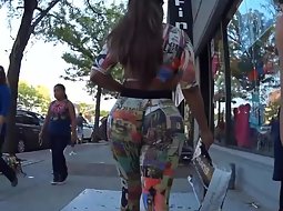 This black booty is so nice and big that it probably gives the best representation of how a hot ebony girl should look. She squeezed her fine big ass in multicolored tights and she wiggled it as she walked.
