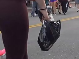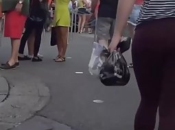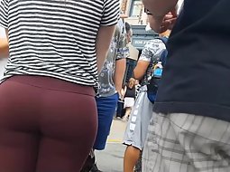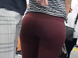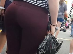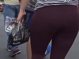 That big butt in dark purple pair of tights is a task for two men. Voyeur got real close to her and despite the size of her huge ass, the shape of it was very inviting. She never noticed that she is being filmed.