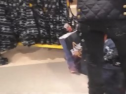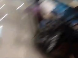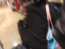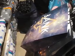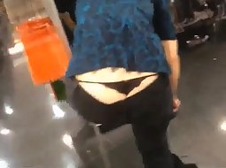 Voyeur followed this hot girl as soon as he noticed that whenever she bends over to try a pair of shoes, her sexy black thong pops out. He spied her really good and he caught half of her butt when she crouched.