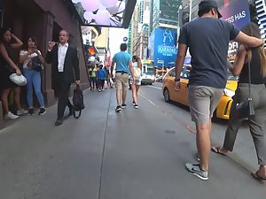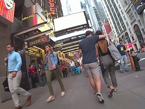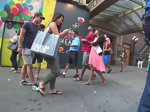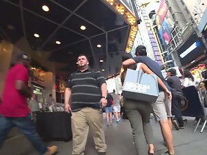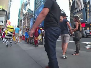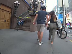 I was following her because of her big wiggly butt way before she even met up with her boyfriend. He was all over her as soon as they were together. He hugs her, grabs her ass and it seems like he can't wait to get her somewhere private. Truth be said, her slightly big ass is ripe for something naughty, lets say when she gets on all fours or a similar pose. I'm judging all that based on her seductive ass wiggle when she walks.