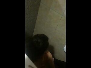 Looks like this businessman in a suit was having a good time with a hot girl in a public toilet. That sexy girl is riding his dick and he got his hands all over her, at least until he notices that a voyeur is filming their sex from above the toilet stall wall. Their heated sexual moment was fully ruined by the voyeur that got away.