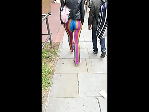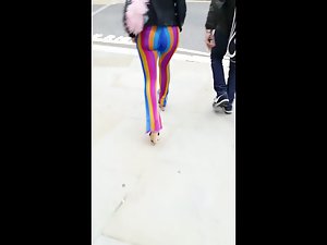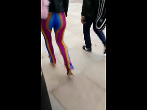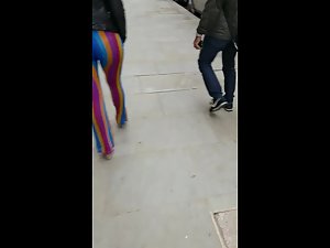 With such shapely ass, her glorious butt would be noticeable in just about any kind of tights. Still, she wears rainbow colored leggings like she wants to make sure that no one would ever miss looking at her ass. Well, she is right about that. Voyeur immediately decided to follow her to see more of that butt wiggle.