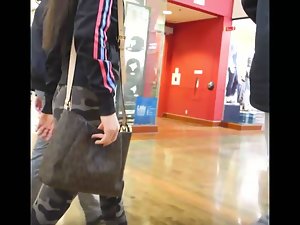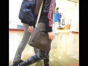 This bitch is so sexy that even her camouflage tights couldn't hide her from my camera. I followed her while she was walking with friends and it was stunning to watch her perky firm ass swing from left to right with every step she took.