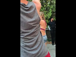 This isn't an ordinary spying video when some cute girl is caught while she is peeing. This happened on a barbecue party during the day, with a bunch of friends involved. Busty girl's friend first films her while she dances and shakes her ass and tits to the music. Later, when he lost sight of her, he looks around and catches her in an unflattering pose on the grass, while she was trying to hide and pee.
