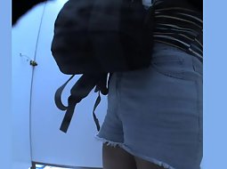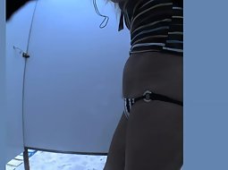 Sweet blonde entered the beach cabin to change her clothes and put on a bikini and she was doing all of it with one hand because she was on the phone all the time. Hidden camera had a nice view of her pussy.
