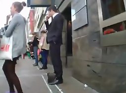 Voyeur had a very erotic sight at the street and he sneakily filmed it. He stood behind a very sexy teen girl that flaunted her attributes by wearing a skimpy pair of jeans shorts and a dark pantyhose under it.