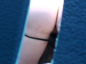 She is one of the party girl's at the festival and as soon as she entered this portable toilet, she got in front of a voyeur, without even knowing it. He peeps on her through a little peeping hole and he gets a marvelous closeup look at her hairy peeing pussy.