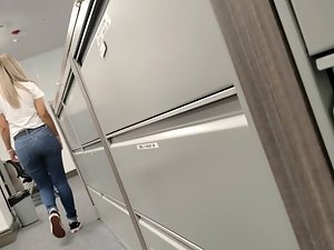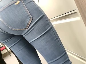 Coworker's kissable face and awesome ass in tight jeans