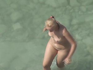She swam to him in the shallow water and it took just a touch of her naked body on his dick, he was instantly rock hard. She smiled and gave him a handjob. Watch closely and you'll see her reaction when cumshot hits her face. You guessed it, voyeur caught all of it.