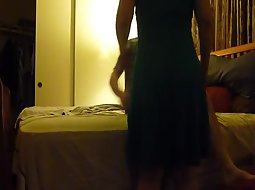This cute girl prepares her boyfriend for sex by giving him a nice long blowjob and then lying with head down and ass up on the bed. He stands behind her and plows her like that and jerks off on her big butt.
