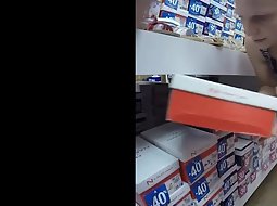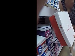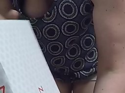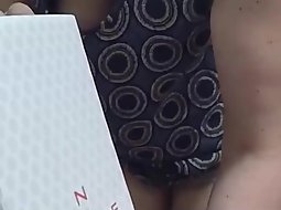 This milf was checking out discounted shoes and that required her to kneel down to check them out and voyeur had a direct view at her sweet tits that were falling out slightly out of her blouse when she leans.