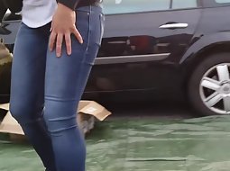 Downblouse of a girl in a yard sale