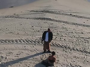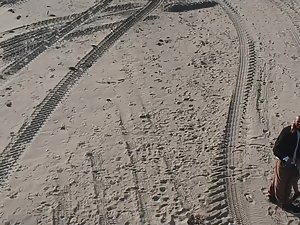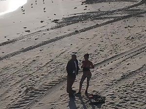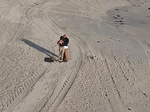 These two are all alone on the beach and they quickly noticed that a drone is checking them out, specially when the girl wanted to change her top. Her boyfriend covers her at first and then a plot twist, when she lowers her top and flashes her sweet tits and nipples to the drone.