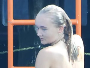 Dry blonde becomes even sexier when wet