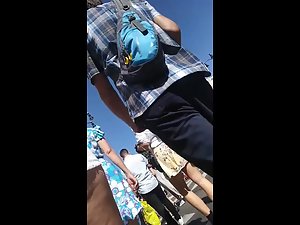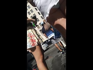 It feels good to spot a girl in such a short miniskirt. Making of this upskirt video was effort free, with simply holding the candid camera a bit down and her lovely ass and panties were fully visible. She keeps walking and doing her thing, without the possibility of noticing that someone is creeping up on her ass like that.