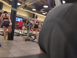 You can imagine how lusty this gym voyeur got if he kept using his candid camera on her for so long in the gym and then even on the street as she went out. She did some running and then she stretched her legs, before walking out.