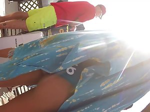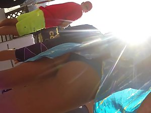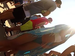 This is the kind of a girl that you can't stop looking as soon as you initially notice her on the beach. She was playing around with her towel while she talked on the phone and I immediately realized how sexy and well built she is. Beautiful face, nice narrow waist and most importantly, an ass that is made of dreams. Her firm round butt looked epic in her half thong bikini.