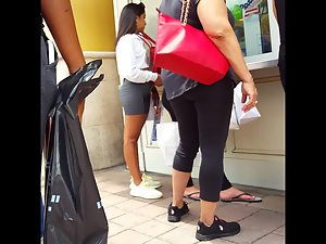 Simply said, that is an epic ass, or those shorts are magical with a push up feature. That exotic girl is waiting in line, which enables the voyeur to come so close to her insane ass cheeks that he could have smelled her if he wanted. Shape, size, ratio and bubbliness, everything is perfect about her booty.