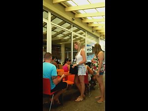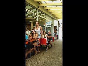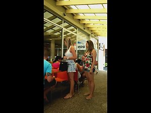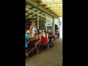 She got an irresistible hot face and an awesome pair of tits in a white top, which made her more than worthy of voyeur's time while she was in the same coffee bar. Just one look at her smug face is enough to fall in love with her.