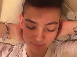 Short hair and serious expression on her face is making her look like a feminist or even a butch lesbian. One way or another, she peacefully closed her eyes to protect them from a blast of cum, and she let her man wank off and cum all over her pretty face. He really exploded all over her face.