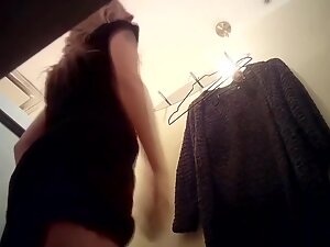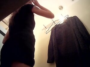 Looks like this tattooed vixen needs a very sexy dress for some occasion and voyeur is peeping on her while she tries it on in the dressing room. He couldn't peep on her continuously but he did make a few good looks every now ant then, specially when her perfect round ass cheeks and sexy thong were in full view of his candid camera.