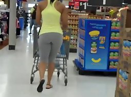 It was plain lovely to spy on this gorgeous young woman in the supermarket since she was wearing very tight yoga pants that made her firm butt stand out so nicely. She didn't even notice me while I filmed.