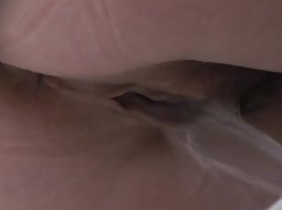 Flabby pussy pissing in closeup