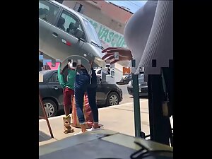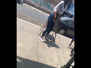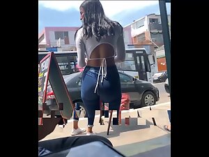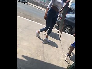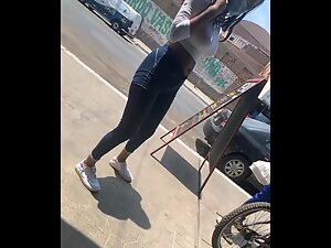 It is crazy to realize that such beauty can be foun at such an unflattering coffee bar. This tall fit girl is working as a waitress and her body is flawless, from head to toe. Hot ass, long legs, narrow waist and even big tits, she has it all, and voyeur can't get enough of her while she works and chats on the street.