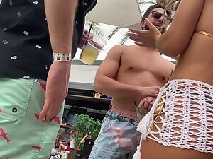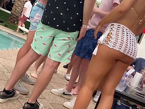 It is easy to see she is the life of this pool party and definitely the hottest girl out there. She got a kissable face, a charming smile and an ass that will become a main part of every wet dream. Voyeur was always around her at the party, even when she flirts with other guys.