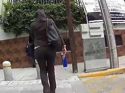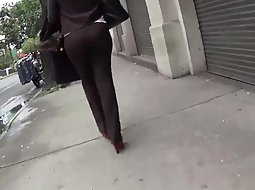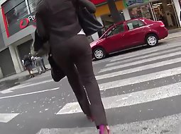 This voyeur was walking close behind a business woman and when he gets closer you'll notice some sexy details about her. She is wearing pink high heels and her ass looks quite good in those black pants.