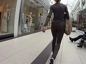 From the moment when voyeur first noticed this stunning fit girl, his camera was turned on and he kept following her. She walked in the store with cosmetics and makeup and she lingered there for a while, without realizing that voyeur's camera is filming her magnificent muscular ass in tights.