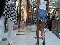 She is as cute as a button in that short skirt and this voyeur followed her all around the mall. Seems like it finally paid of in the end since he managed to sneak a peak under her skirt and saw those hot white panties.