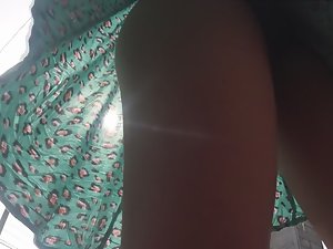 That short summer dress was flying all over the place and I managed to hold my candid camera down to peek in upskirt. I loved how hot those young legs, thighs and even slight pussy bulge looked like when seen from such closeness, without her ever realizing it.
