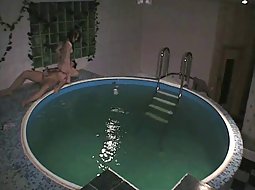 This couple probably lost their memberships in this wellness center after the review of this hidden camera footage. They took the opportunity of being alone at the pool and they fucked like animals, so silly.
