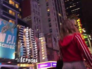 Seeing how ravishing her tight butt looks in those leggings with a cute pattern has made the voyeur follow her from the subway and beyond. He got so close to her on the stairs that he could have smelled her amazing ass if he wanted to. Those patterned leggings really crawled inside her ass crack and made her wiggle look even more arousing.
