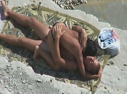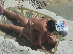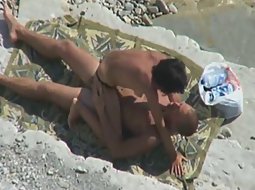 Doesn't seem like she had any issue with the fact she was at a public beach, as soon as he got horny enough, she straddled him and started riding his cock with her petite pussy. I watch it from a near by hill.