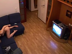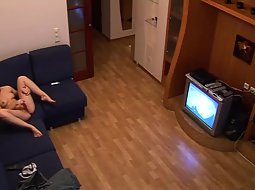 She was obviously very bored and this hidden camera caught her as she successfully beat the boredom away by fingering her pussy during a porn movie. She apparently tried to imitate a lot of porn scenes.