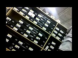She looked hyped as she dug through the boxes of shoes to try them on so I took the chance to act as if I'm doing the same nearby but actually I filmed that sweet pussy whenever she bent over.