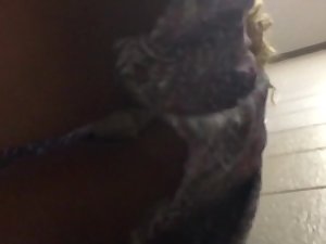 Just walking behind this lovely girl on the stairs is enough to peek into her upskirt. Her long legs and sweet ass are fully visible, along with that tiny white thong that vanishes inside her ass crack. Voyeur walks through the entire staircase behind her and keeps his candid camera directly in her upskirt.