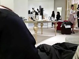 Voyeur was right behind her in the shoe store and her miniskirt got raised once she leaned forward to try out a new pair of shoes. That's when her gorgeous butt cheeks and a sexy thong became fully visible.
